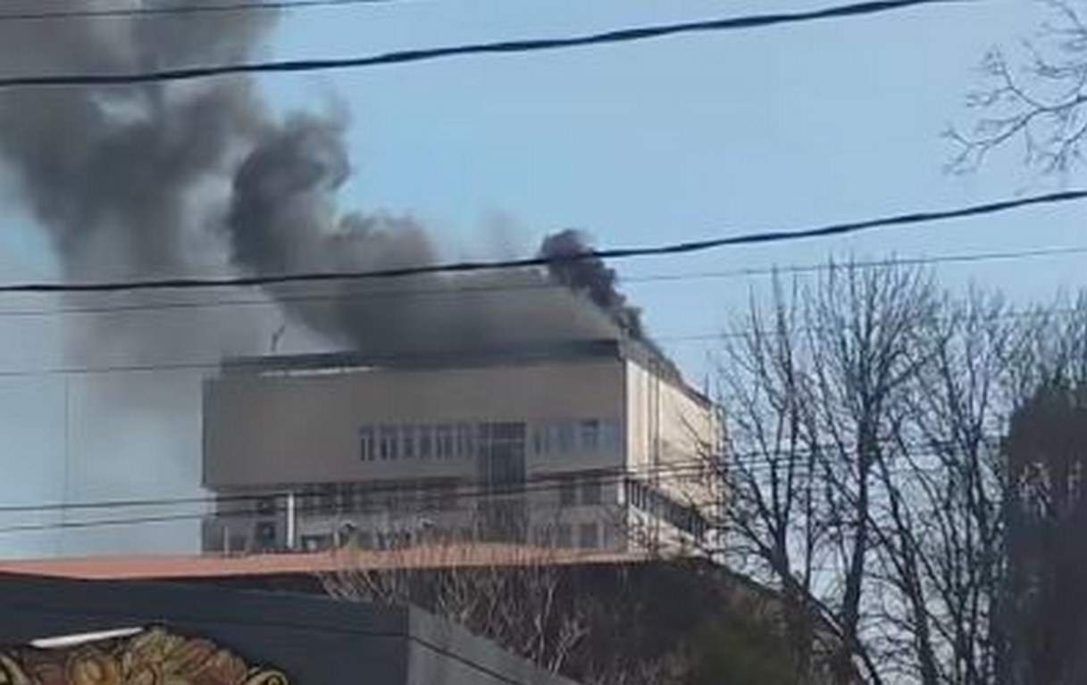На място са се събрали граждани и медии, а вече са публикувани снимки от инцидента. На тях се вижда последният етаж на сградата, обхванат от пламъци.