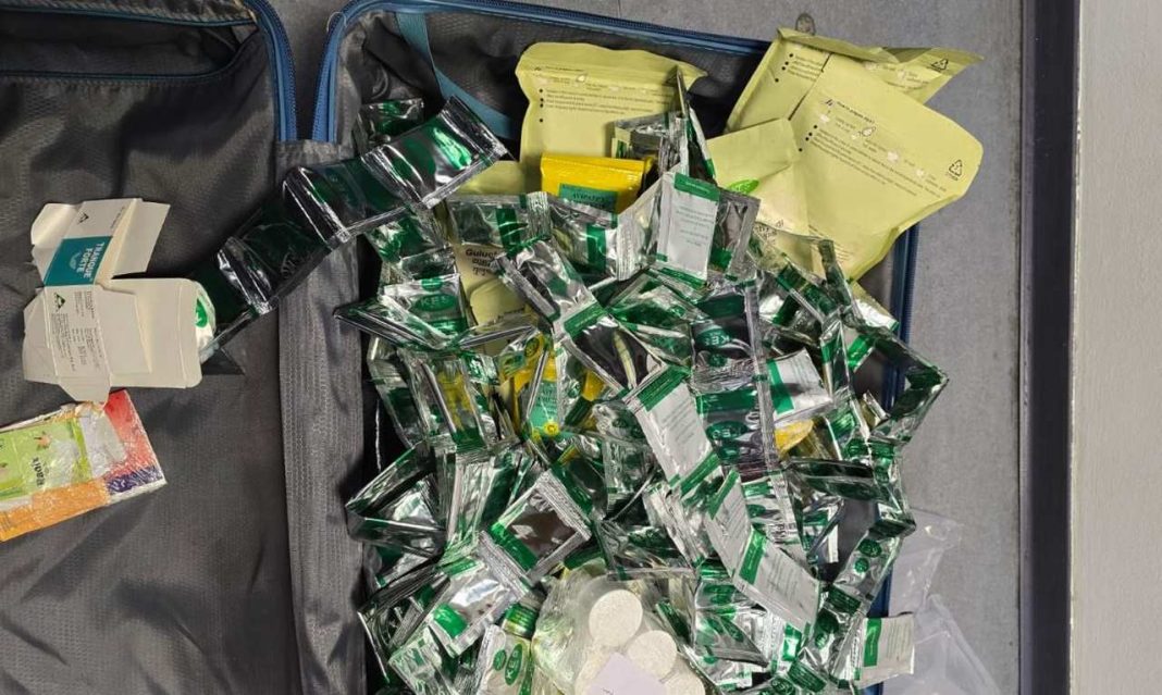 Общото количество на иззетите стоки е 7840 таблетки, разпределени в блистери и шишенца, както и над 6 кг прахообразни вещества, опаковани в бутилки и пакети. Задържаните пътници обяснили, че пренасят артикулите като услуга за свои приятели и не са били наясно с изискванията за деклариране при преминаване на държавната граница.