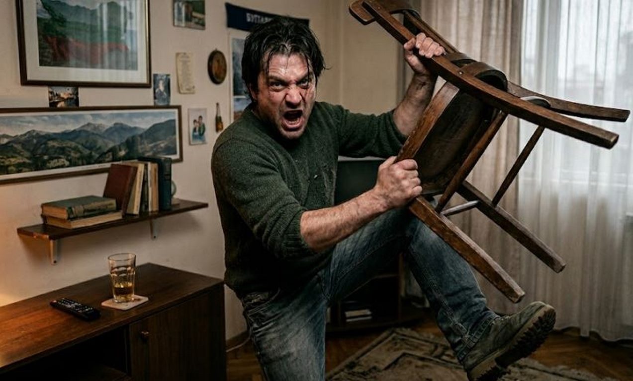 62-годишният мъж е ударен със стол в областта на главата.