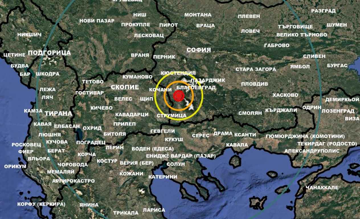 Според Националния институт по геофизика, геодезия и география към БАН епицентърът се намира на 4.8 км от Симитли, област Благоевград, и на около 90 км от София.